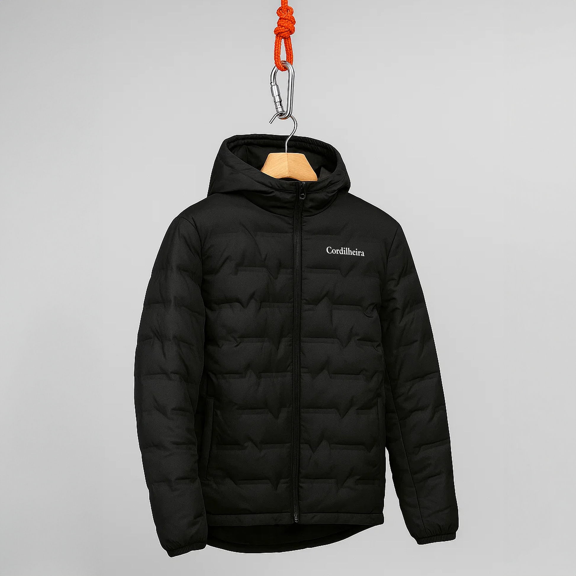 A Jaqueta Puffer Cordilheira CLOUDCREST combina leveza e alta eficiência térmica: enchimento com plumas de ganso (90%) para aquecer com pouco volume, forro em tecido térmico que conduz e retém o calor por mais tempo e tecido externo 100% poliéster fosco de toque macio e acabamento limpo. O capuz ajustável cria barreira contra o vento, enquanto os gomos horizontais garantem estrutura uniforme e caimento elegante. Detalhes funcionais como zíperes YKK e bolsos com zíper reforçam a durabilidade sem poluir o design